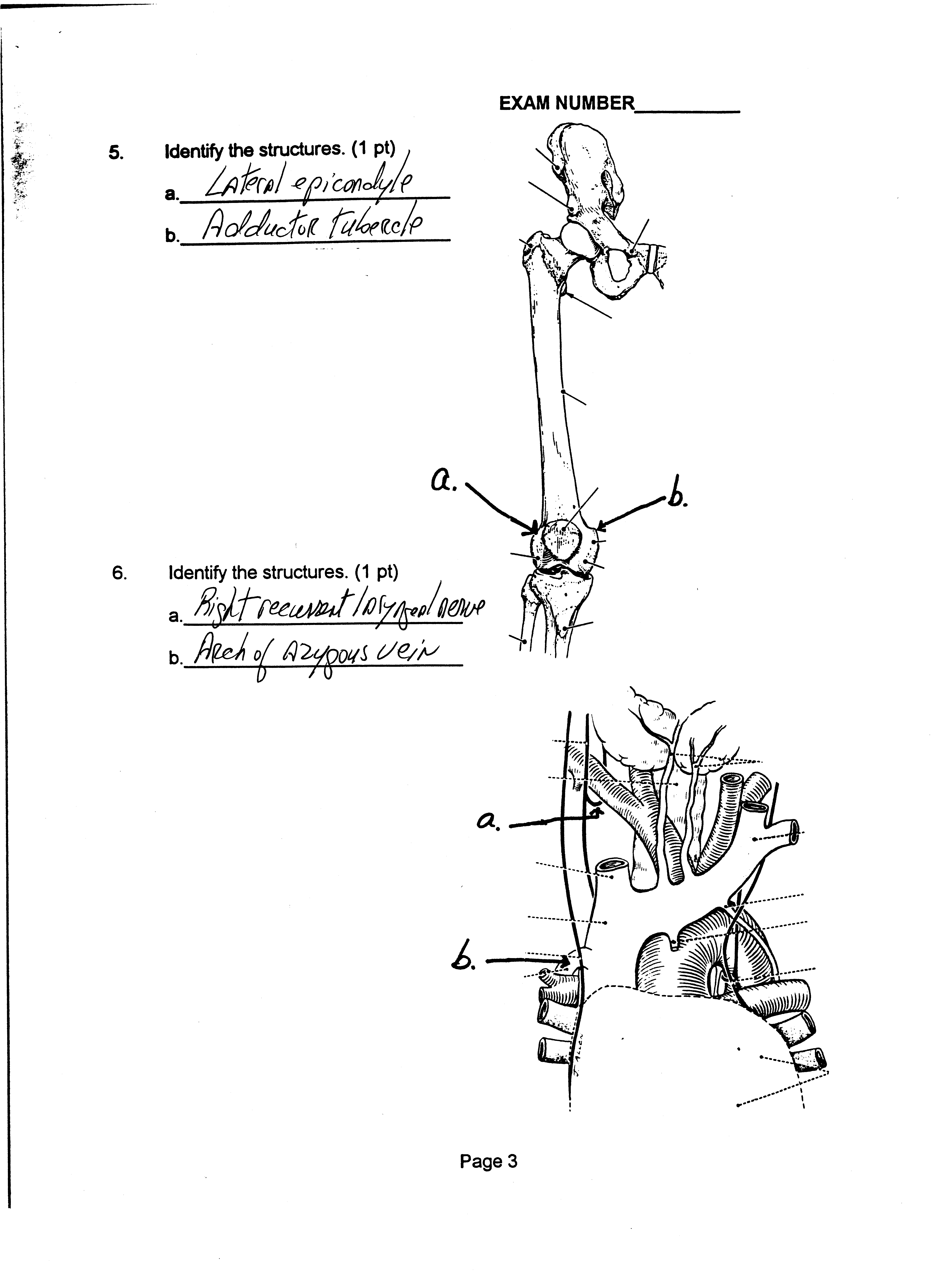 Human Gross Anatomy - Examination Key for Lower Limb and Thorax Short Answer (44 pts)