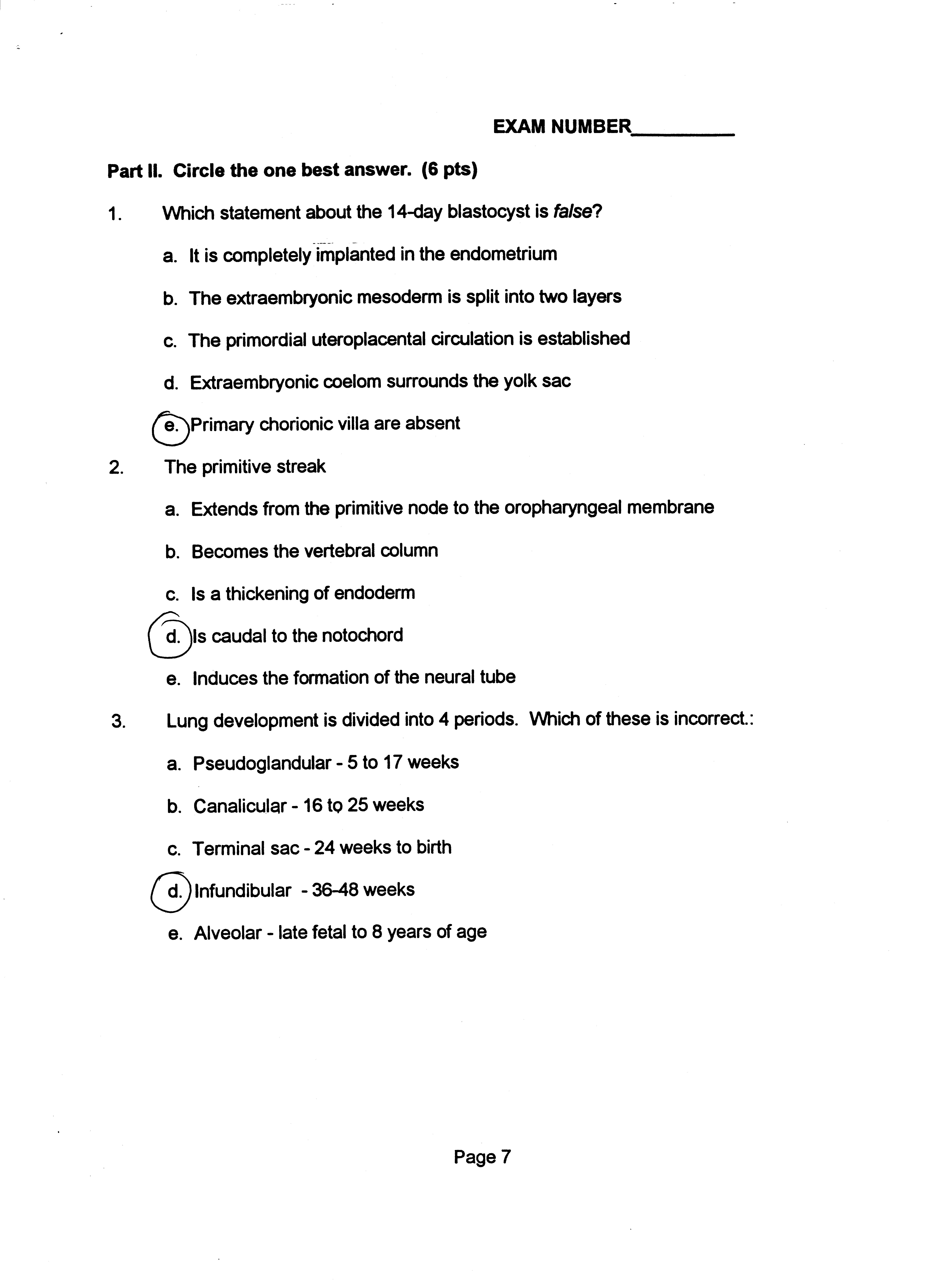 Human Gross Anatomy - Examination Key for Lower Limb and Thorax Short Answer (44 pts)