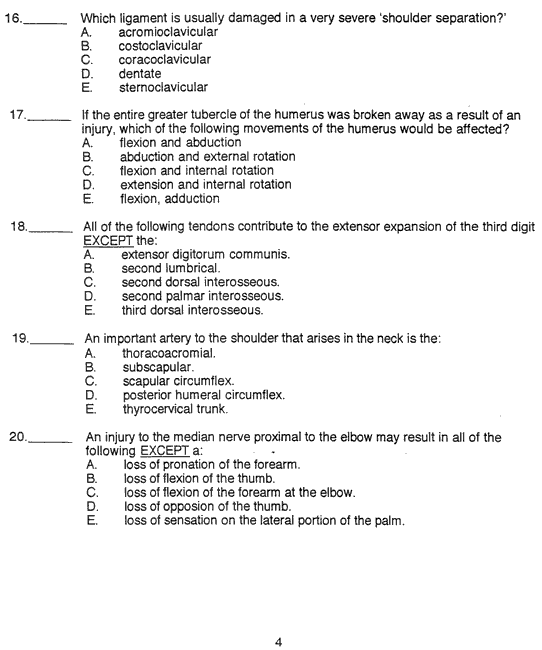 Human Gross Anatomy Exam 3 - Upper Limb October 9, 1999 Page 04