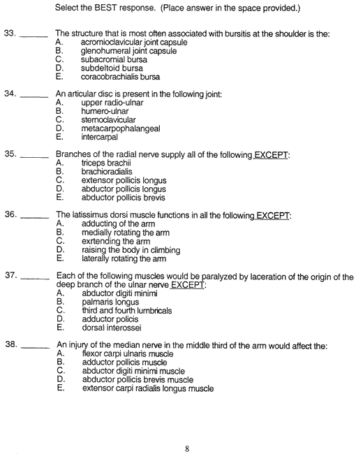 Human Gross Anatomy Exam 3 - Upper Limb October 6, 2000 Page 08