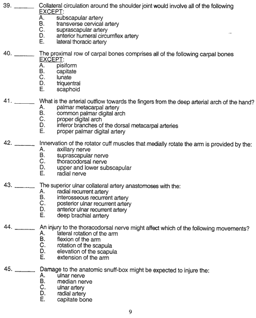 Human Gross Anatomy Exam 3 - Upper Limb October 6, 2000 Page 09